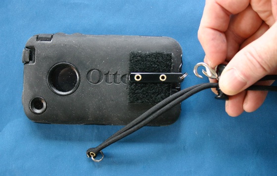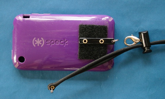 Our Industrial Adhesive Holder arrives in the mail and attaches to the back of any case or sleeve. A special lobster clasp allows you to separate the Adjustable Lanyard from your case or sleeve whenever desired. You can use this on any iPhone case or sleeve, or iPod Touch case or sleeve, or any other Smartphone case or sleeve.
