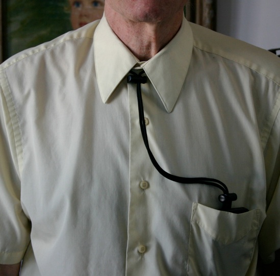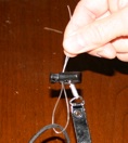 9. 9.To change neck straps, pick the lanyard you want. Use a short piece of fishing line, string, dental floss, or heavy thread, if necessary, to pull the loop of the lanyard through the cord lock, while you squeeze the cord lock open. You should not need to use any “string” with the clear lanyards. See photo below. A short piece of fishing line is included to help you change lanyards if desired.